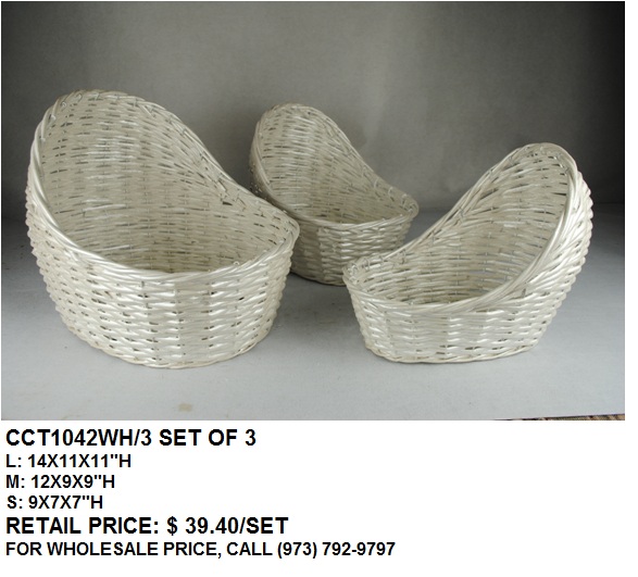 WHITE WILLOW BASKET BABY CARRIAGE SET OF 3
