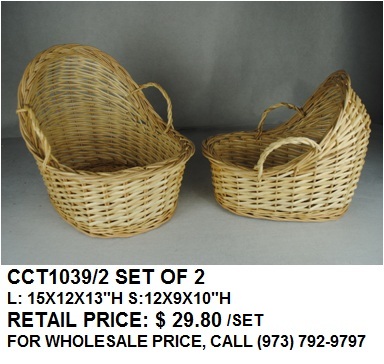 NATURAL WILLOW BASKET BABY CARRIAGE SET OF 2